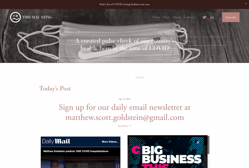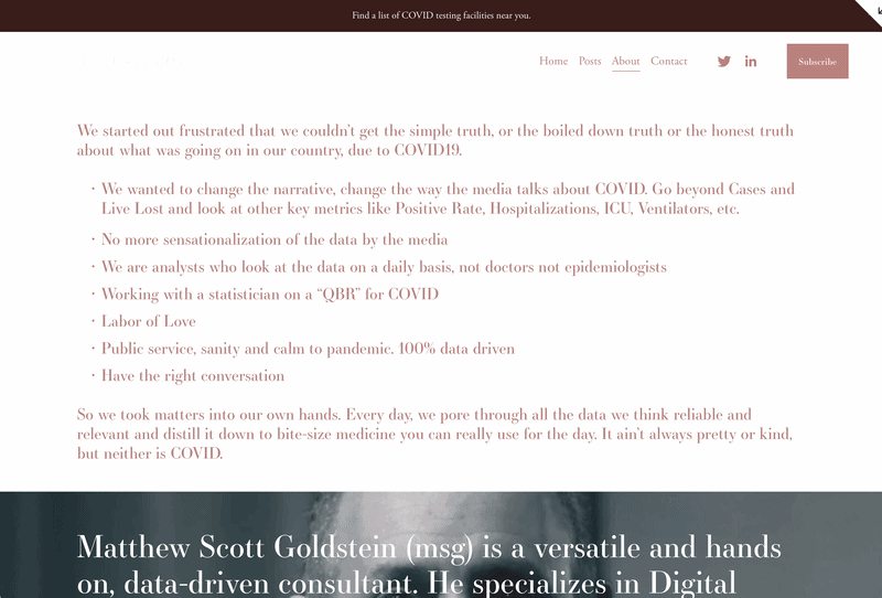 During COVID, a weekly roundtable of thought leaders couldn't get honest, data-driven public health information into the hands of people who needed it. We built the brand and editorial platform to cut through the noise — calm, clear, and beholden to no algorithm.